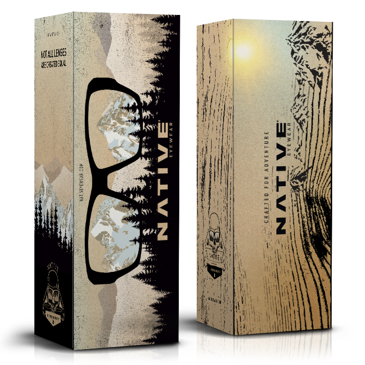 Native Eyewear wanted to update their packaging to match their outdoor, active style. Our only guidance was to let the rough, natural cardboard show through our ideas.
